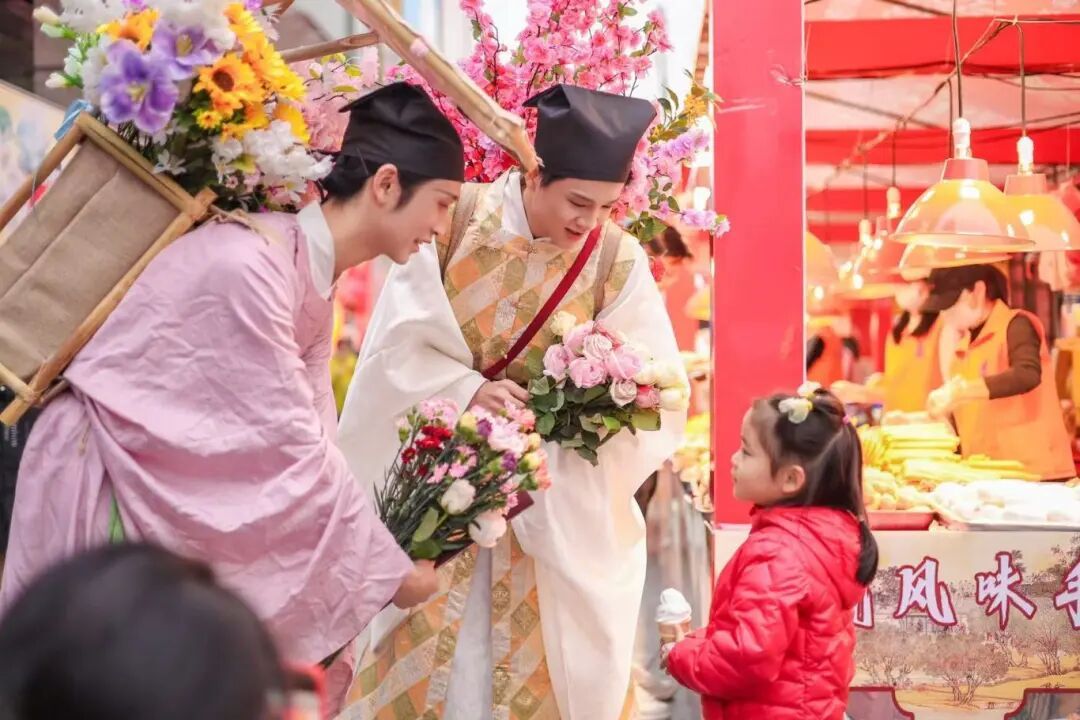 2月7日—16日,穿着传统服饰的卖花郎不定时巡游派送免费鲜花,只要上前说一句吉祥话,就能把娇艳的鲜花和一整年的好运气带回家,把春天揣进兜里,幸福感直接拉满。