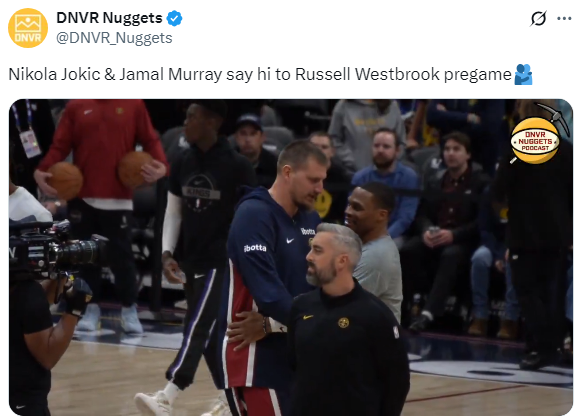 值得一提的是,掘金为威少播放致敬视频,威少拍胸挥手致意,全场球迷为他起立欢呼;上赛季威少为掘金效力,今年休赛期威少拒绝执行球员选项,最终与国王签下1年360万美元的老将底薪合同。